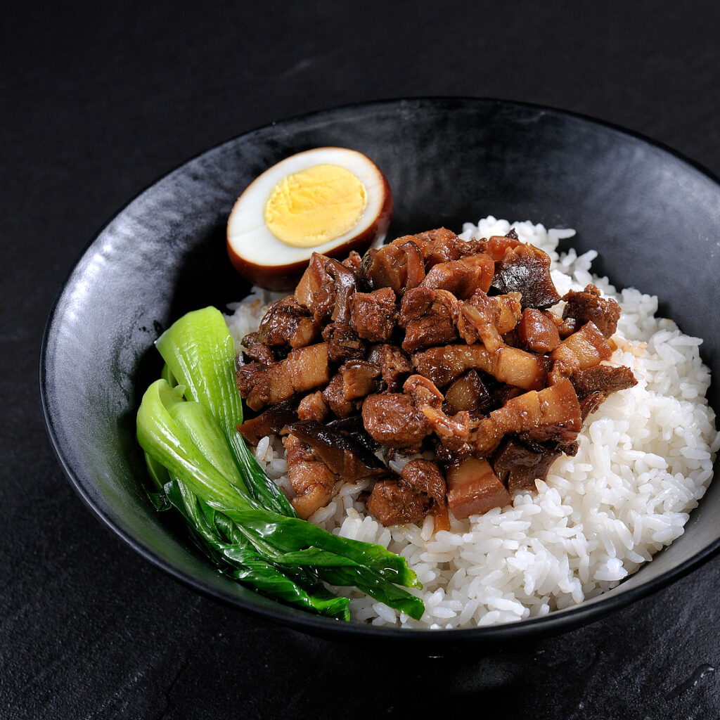 Riz au porc braisé aux champignons 香菇卤肉饭