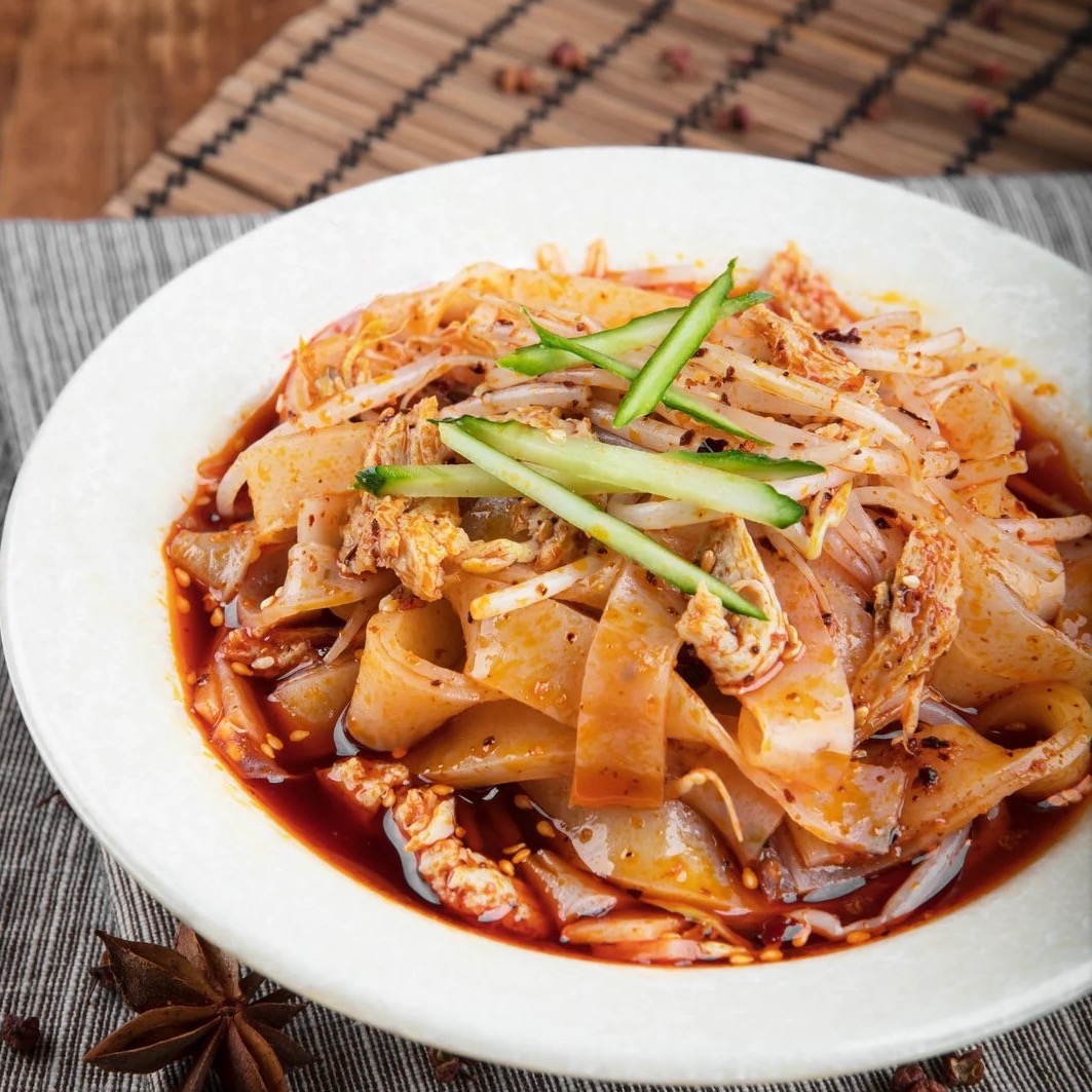 Pâtes froides de blé larges, sauce sésame maison 招牌麻酱凉皮